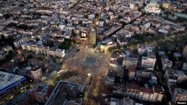 Независимый наблюдатель 28 июня оценил численность возглавляемого студентами антиправительственного собрания в 140 000 участников, многие из которых скандировали «Мы хотим выборов!»На центральной площади Славии в Белграде и вокруг нее. Ранее полиция оценивала митинг в 36 000 участников.