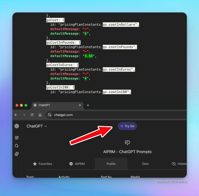 В Сети появилась информация о новом тарифном плане ChatGPT под названием Go, утечкой поделился пользователь с ником @btibor91. первоначально ожидалось, что тариф будет доступен только в Индии за 399 INR, но теперь, по словам btibor91, в веб-приложении ChatGPT появились упоминания о стоимости подписки в других валютах: 4 доллара США, 4 евро и 3,50 фунтов стерлингов, что примерно соответствует 155-195 гривнам.
