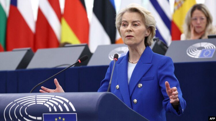 Европа продолжит в дальнейшем поддерживать Украину и должна продолжать давление на Россию до тех пор, пока не будет достигнут справедливый и прочный мир, заявила с трибуны Европарламента в Страсбурге президент Еврокомиссии Урсула фон деря Ляйен, передает корреспондент Радио Свобода.