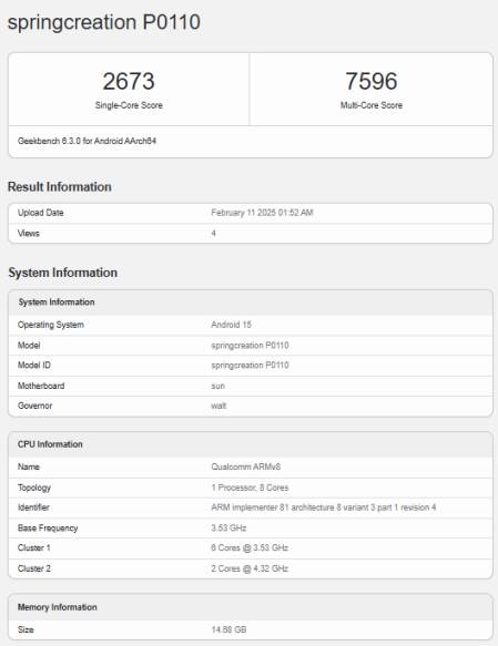 В Geekbench устройство с индексом P0110, оснащенное процессором Snapdragon 8 Elite и 16 ГБ ОЗУ, набрало 2673 и 7596 баллов в одно — и многопоточной дисциплине соответственно. Заодно смартфон прошел сертификацию в CMIT и 3C-ведомства подтвердили поддержку функции 95-ваттной быстрой зарядки.