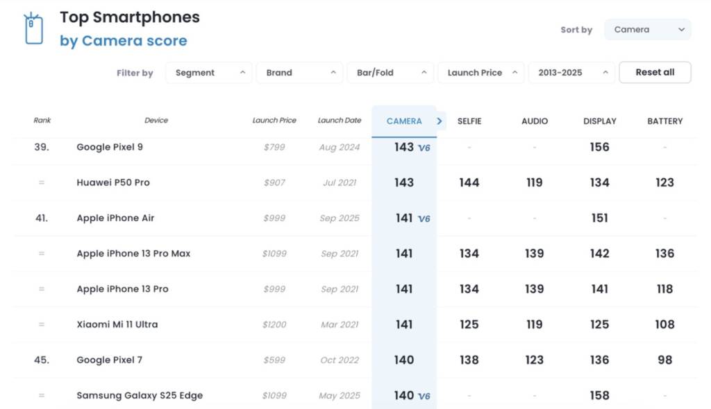 Несмотря на это, профессиональные тесты DXOMARK показали уверенные результаты: iPhone Air набрал 141 балл и занял 41 место в глобальном рейтинге, сравнимом с iPhone 13 Pro, iPhone 13 Pro Max и Xiaomi 11 Ultra. Основная камера Air по качеству близка к iPhone 17 Pro, что подчеркивает высокий уровень съемки.
