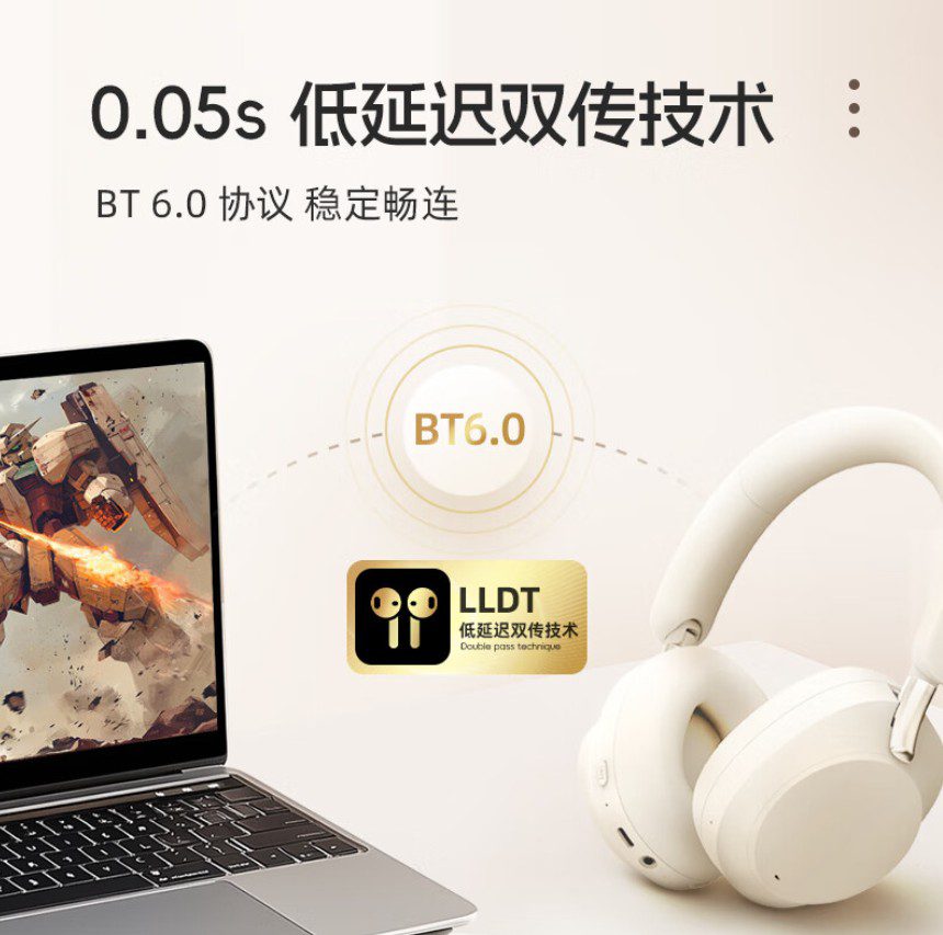 Новинка имеет 40-мм драйверы, поддержку Bluetooth 6.0, массу в 275 грамм и отделку амбушюров искусственной кожей и наполнителем с эффектом памяти.