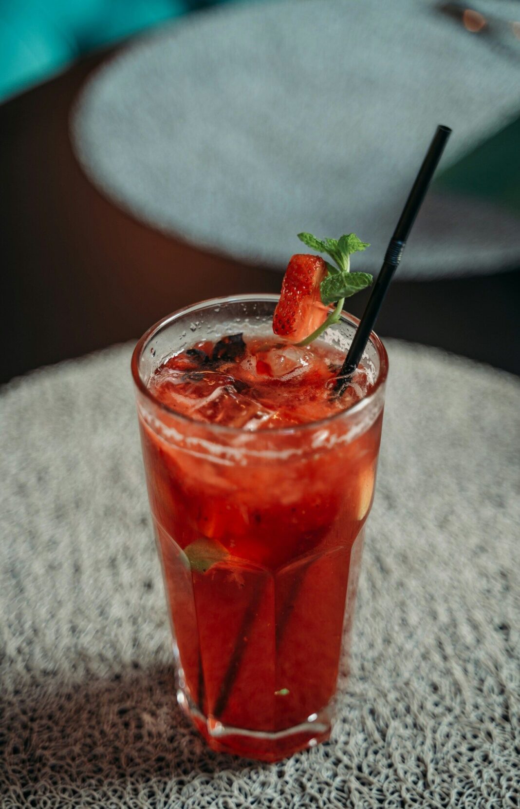 Блендер или максимально измельчить вручную клубнику и лайм. Добавить сироп. Полученную смесь разлить по стаканам и долить минеральную воду. Добавить лед и украсить напиток мятой.