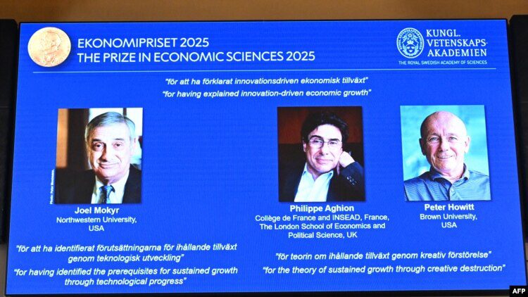 Премия по экономике памяти Альфреда Нобеля, учрежденная банком Швеции в 1968 году, была присуждена трем исследователям – Джоэлю Мокиру, Филиппу Агьону и Питеру Хауиту.