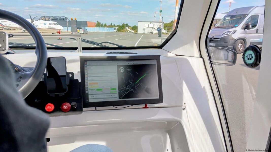 На территории аэропорта Падерборн инженер Михаэль Шпенглер демонстрирует, как далеко продвинулись технологии беспилотного вождения в Германии.