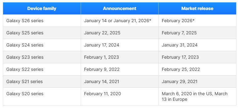 Как показывает история предыдущих релизов, Samsung придерживается схожего графика: серию Galaxy S25 представили 22 января 2025 года, а в продажу она поступила 7 февраля, тогда как S24 презентовали 17 января 2024 года с последующим запуском 31 января. Это делает январь и февраль традиционными месяцами для запуска новых поколений Galaxy.