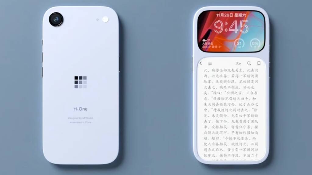 Нижнюю часть занимает большой E-Ink-дисплей для чтения книг и работы с текстом. Двойной экран позволяет одновременно запускать различные приложения: например, управлять музыкой на верхнем дисплее, пока на нижнем открыта книга.